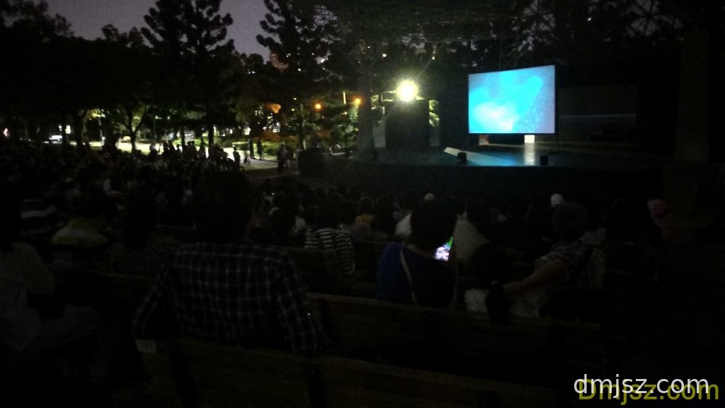 晚上的公园。老人孩子会在公园看免费放映的电影,大概是英国BBC之类的。